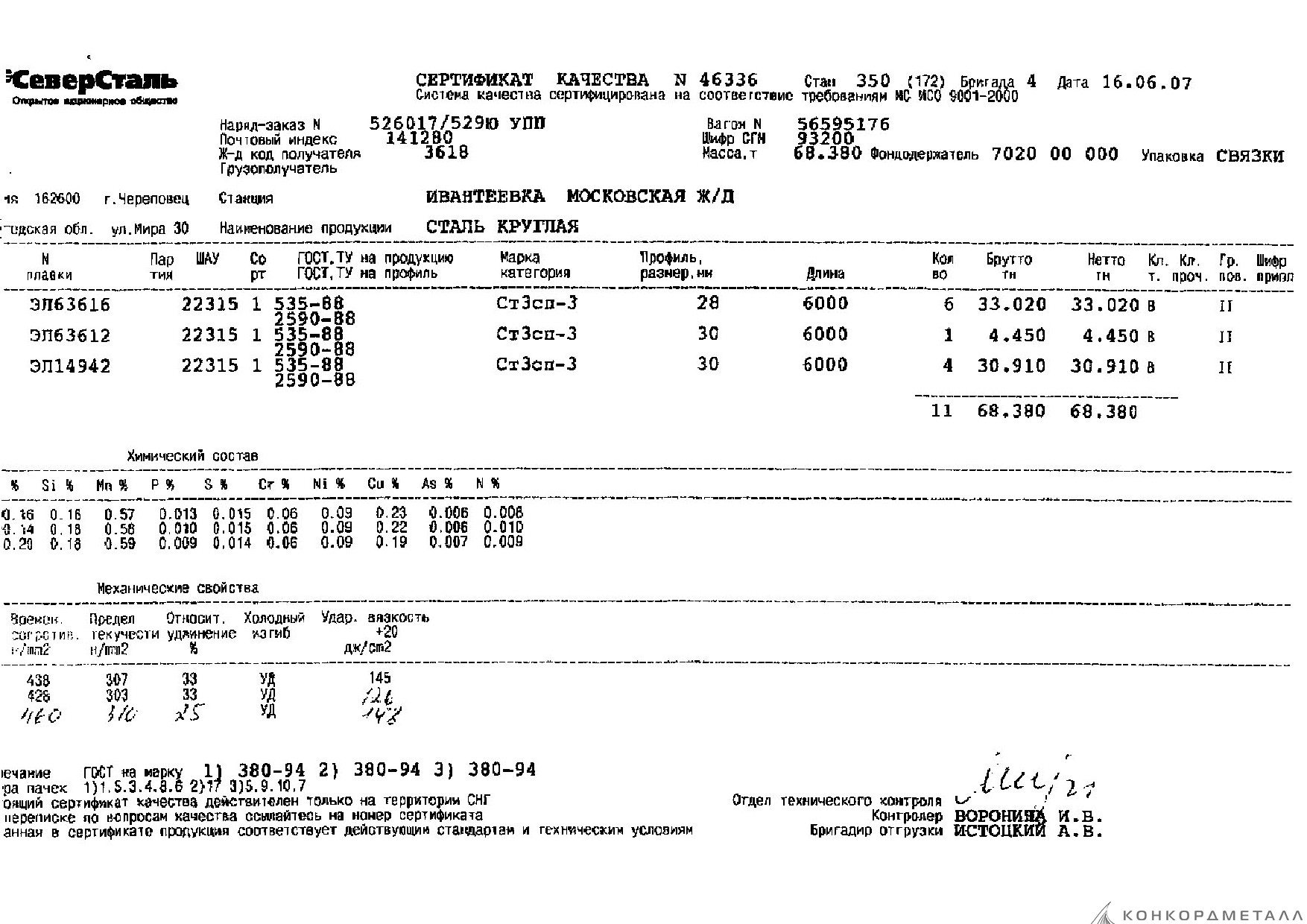 С каждой товарной позицией мы предоставляем все сертификаты и паспорта качества, а также товарно-транспортную накладную.