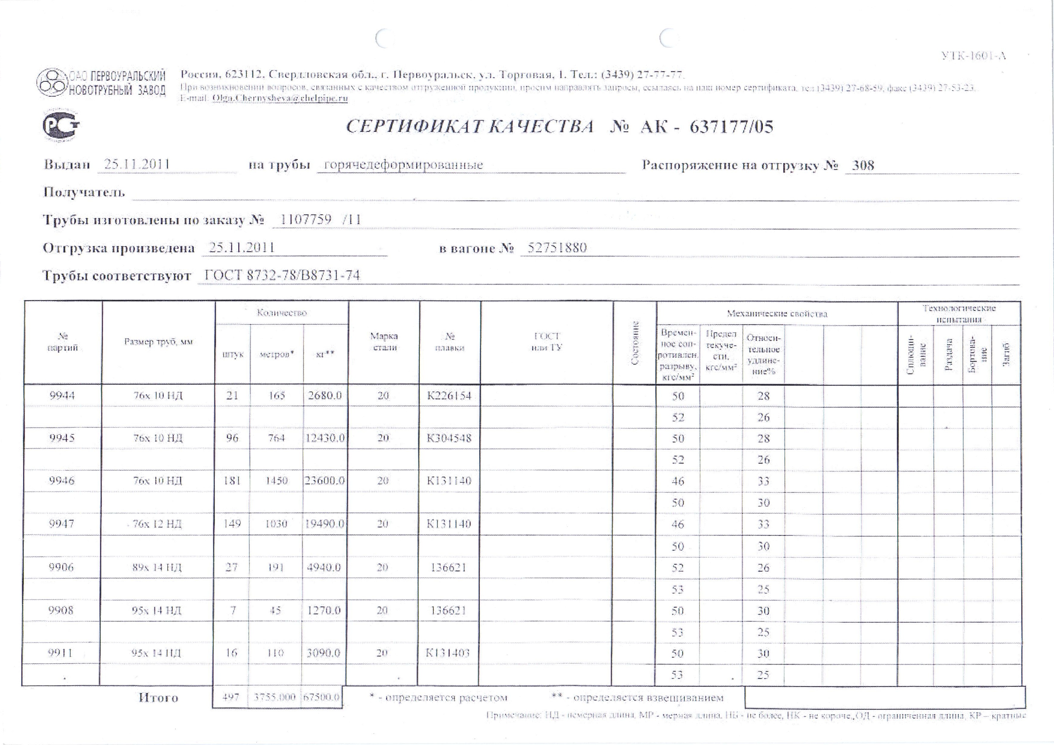 С каждой товарной позицией мы предоставляем все сертификаты и паспорта качества, а также товарно-транспортную накладную.