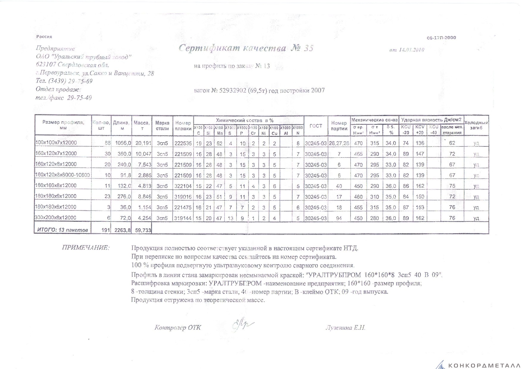 С каждой товарной позицией мы предоставляем все сертификаты и паспорта качества, а также товарно-транспортную накладную.