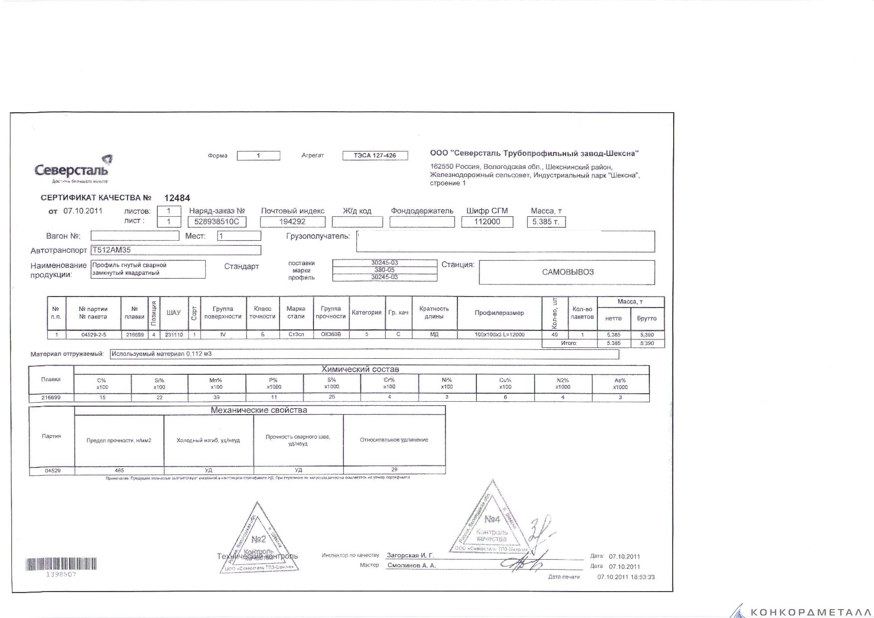 С каждой товарной позицией мы предоставляем все сертификаты и паспорта качества, а также товарно-транспортную накладную.