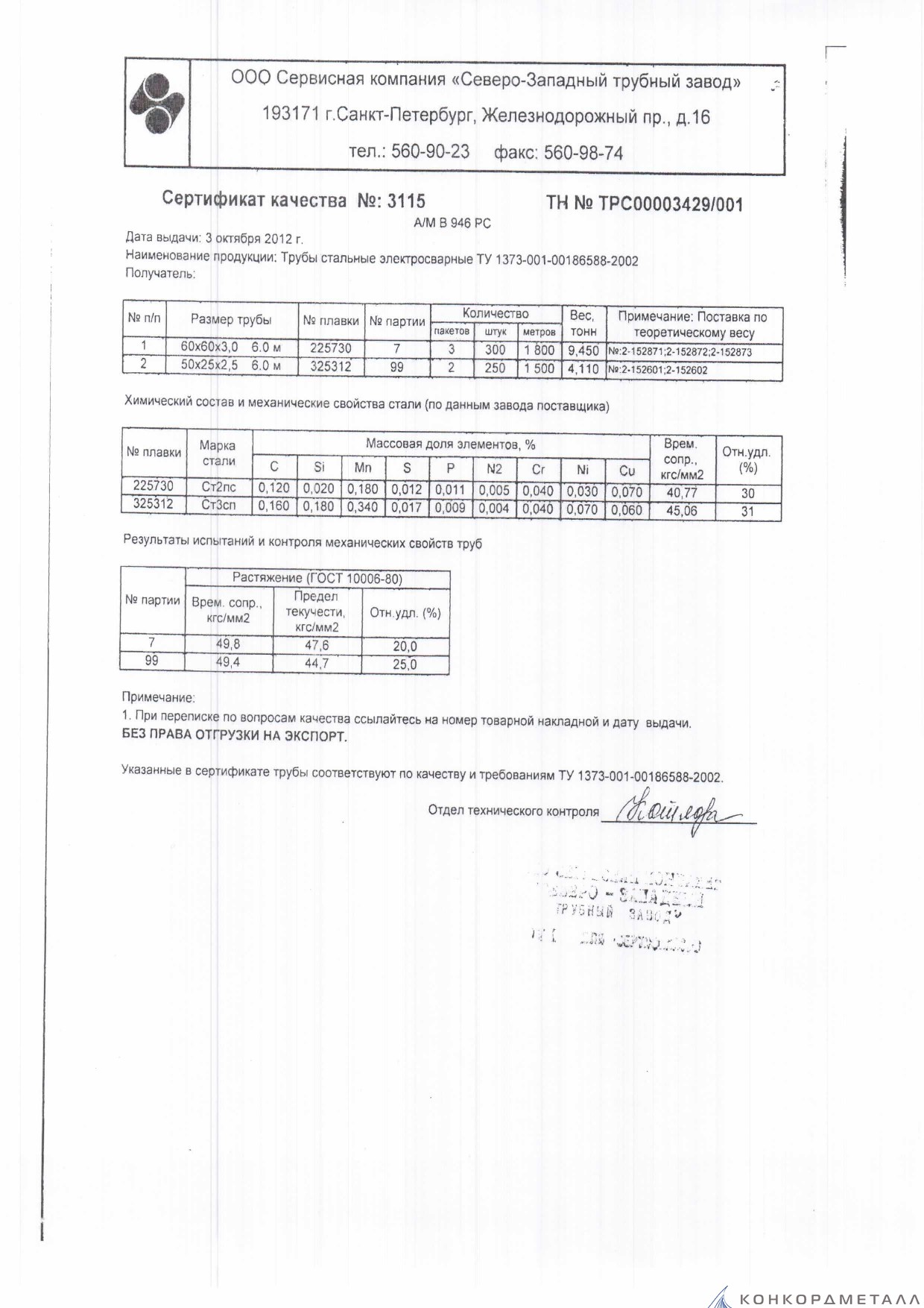 С каждой товарной позицией мы предоставляем все сертификаты и паспорта качества, а также товарно-транспортную накладную.