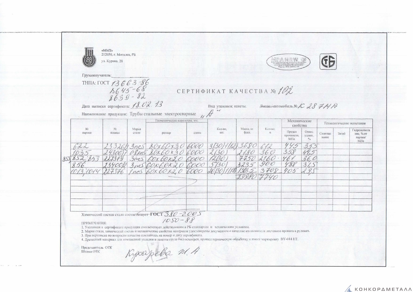 С каждой товарной позицией мы предоставляем все сертификаты и паспорта качества, а также товарно-транспортную накладную.